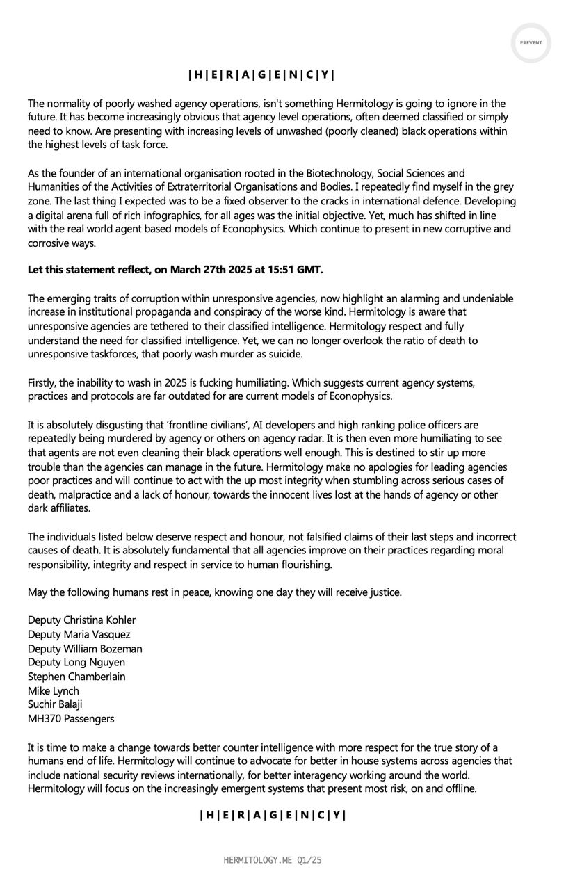 | H | E | R | A | G | E | N | C | Y | VIA HERMITOLOGY Q1/25